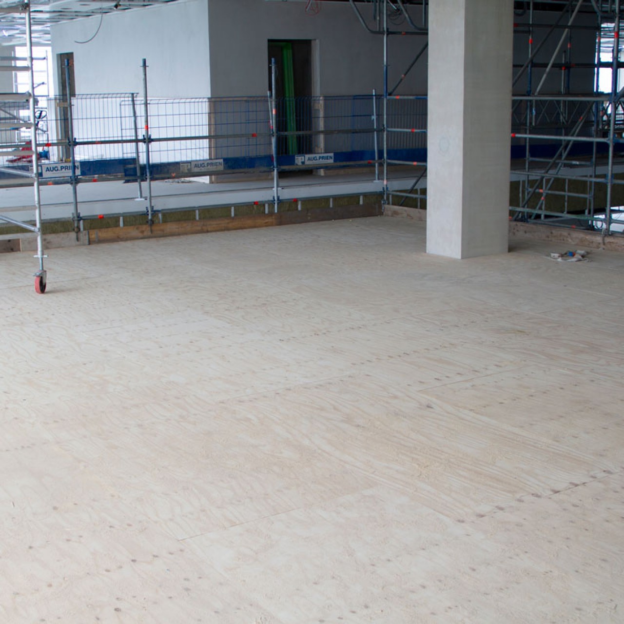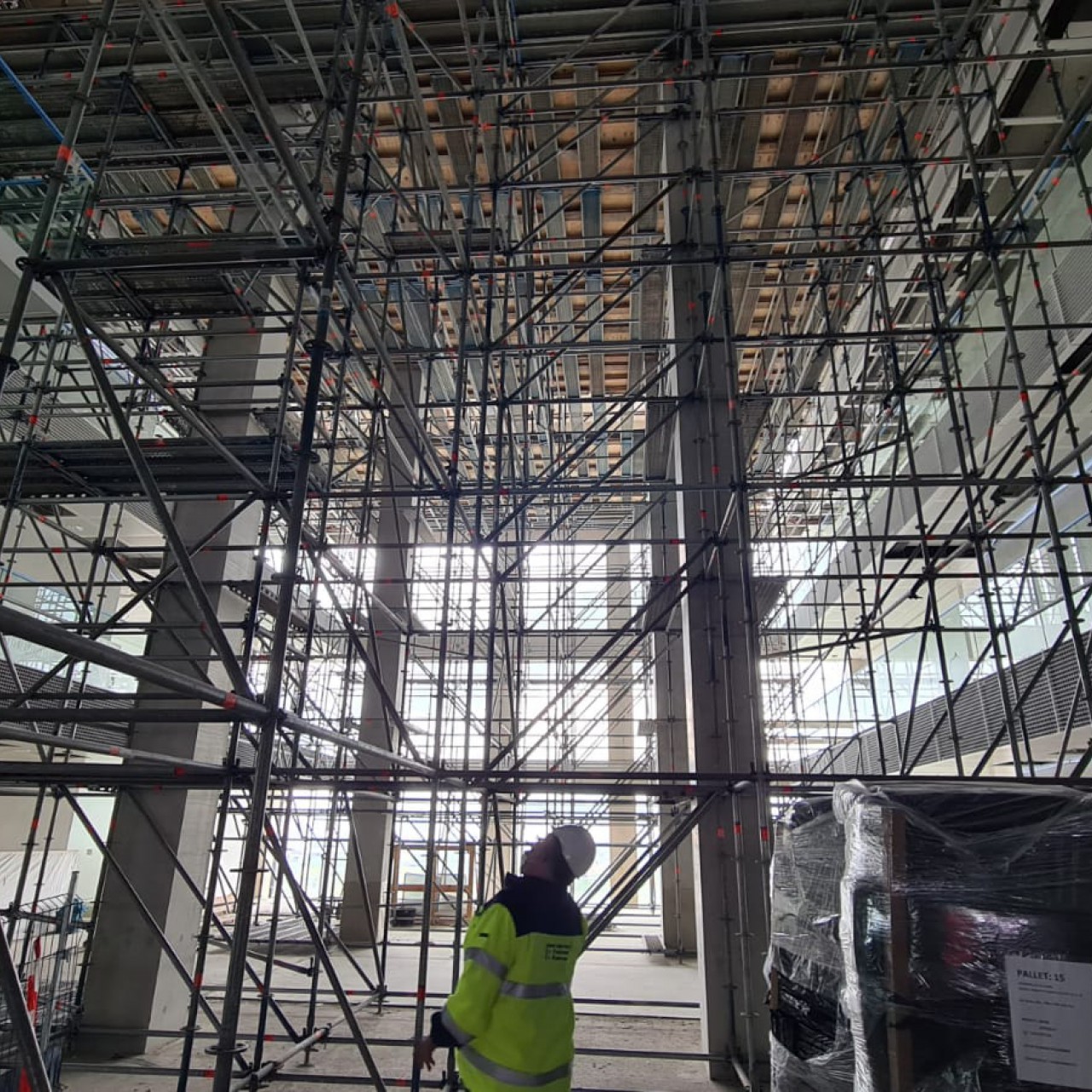 Naast de verschillende trappentorens in en rondom het gebouw, werd er alleen al voor de montage van de atriums gebruik gemaakt van ruim 18.000 m³ aan Layher steigermateriaal. In totaal is er ruim 24.000 m³ aan Layher steigermateriaal gebruikt. Deze materialen werden geleverd door RECO Materieelverhuur B.V.